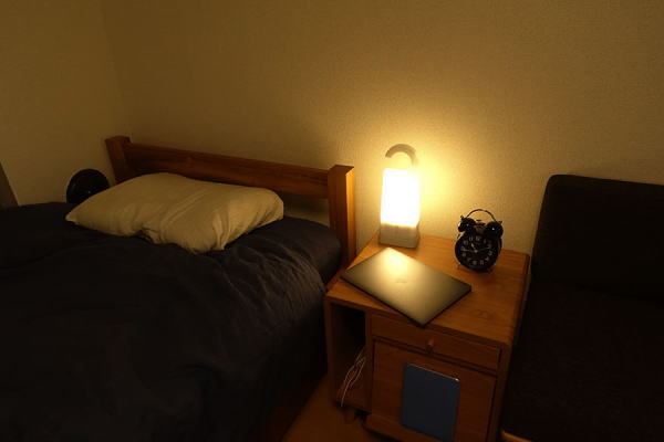 次は電気製品です。「持ち運びできるあかり」。普通の懐中電灯でもいいのですが、コノ明かりもかなり便利です!この明かりは持ちやすい、かつ、見た目が何しろオシャレです。コスパ的にも最強と言えるでしょう。持ち手がハンガー形状になっているので、いろいろな場所に引っかけることができます。もちろん暗闇でもハッキリ見えるので、災害時、夜の散歩にも問題ありません。